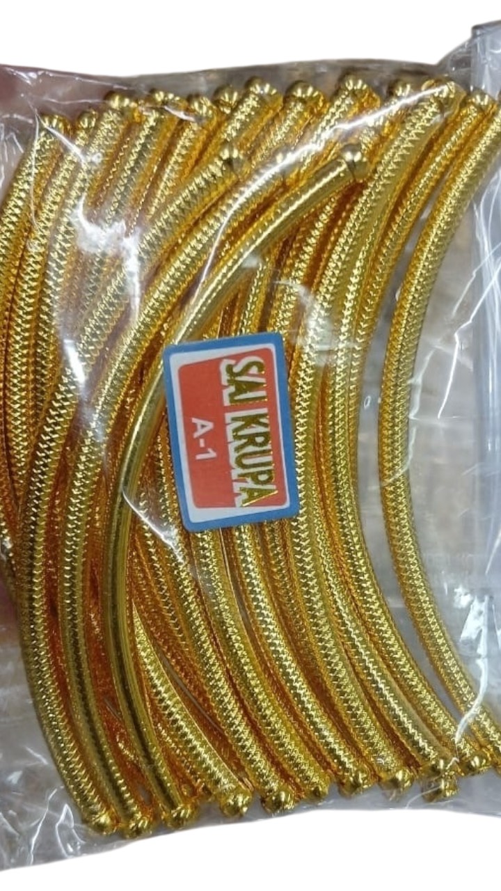 गोलसर वळण असलेली पाईप ज्वेलरी बनवण्यासाठी वापरली जाते. याचा वापर खास करून तुशी, गळ्यातील माळा किंवा नेकलेस डिझाईनमध्ये केला जातो. हे पाईप्स मेटलचे असून त्यांना गोल्डन पलट दिलेला असतो, त्यामुळे हे दागिन्यांना पारंपरिक आणि राजस लुक देतात.