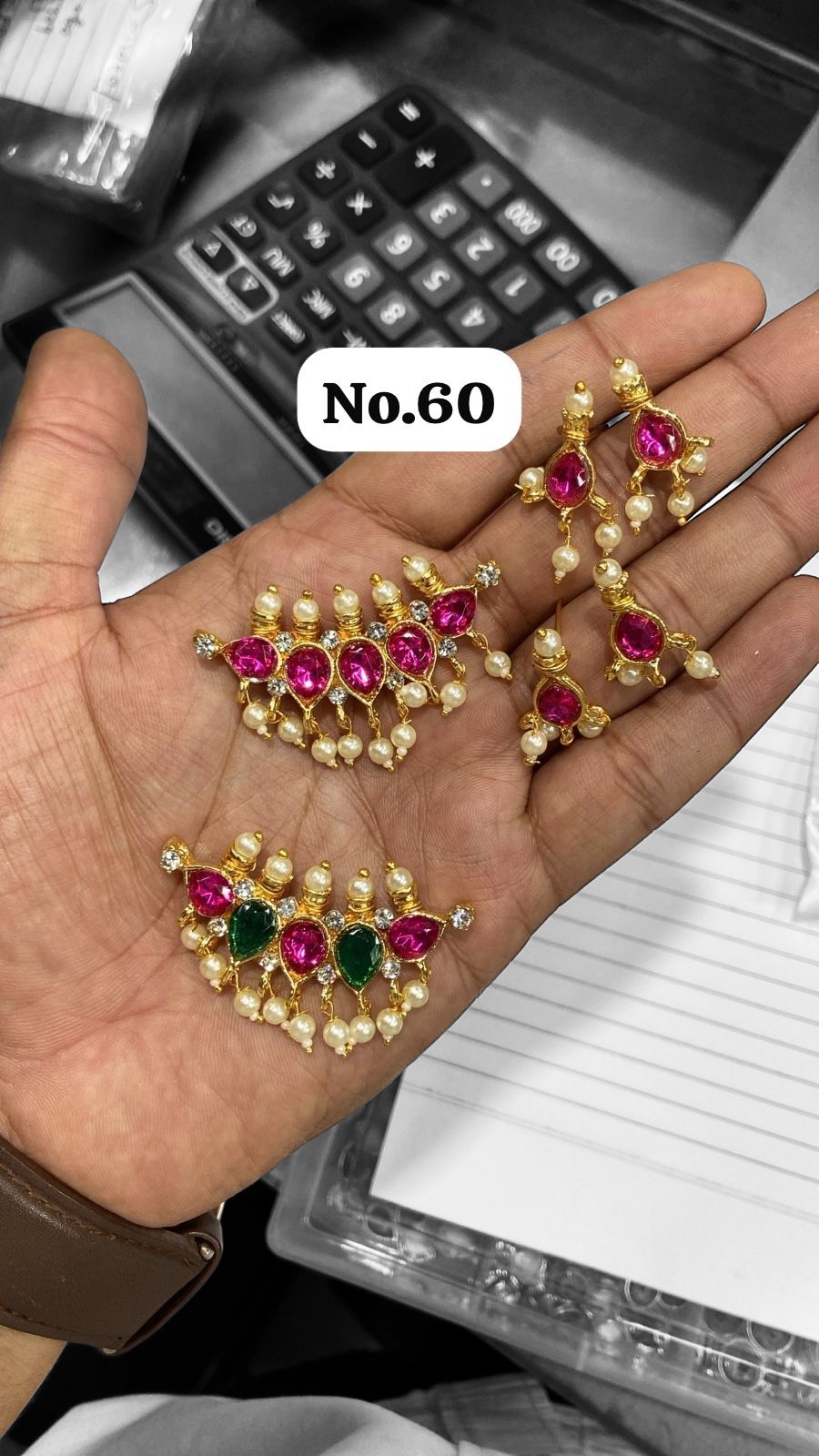 Finish: The gold-polished base provides a luxurious finish, highlighting the vibrant red stones and lustrous pearls.